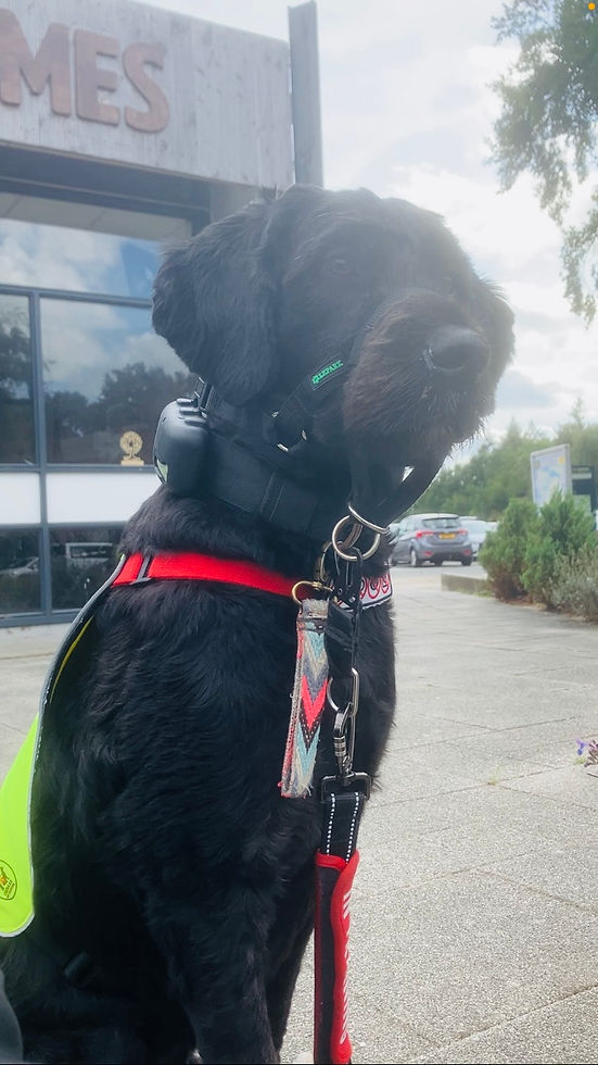 Toch gebruik ik wél een halster bij mijn assistentiehond Iris. Maar dan op mijn manier. Met een eigen ontworpen Halster Connectie.